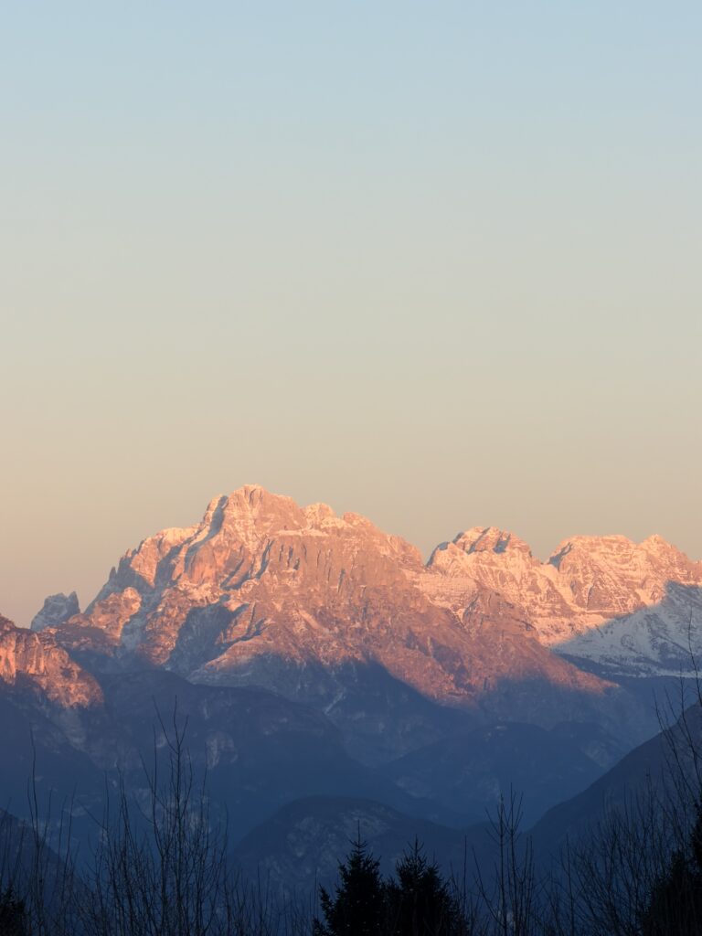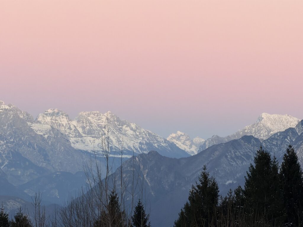 Dal pianoro e dalla casera lo sguardo abbraccia la conca di Tolmezzo con la sagoma dell’Amariana ben in vista; spot perfetto per un tramonto o per fermarsi la notte a guardare le stelle.
